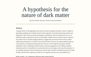dark-matter-hypothesis-jcj.dk | Henrik Papsø Munk | Aarhus C | DK | 2026-01-24 | 2026-01-16 | 2026-03-22 | ok |