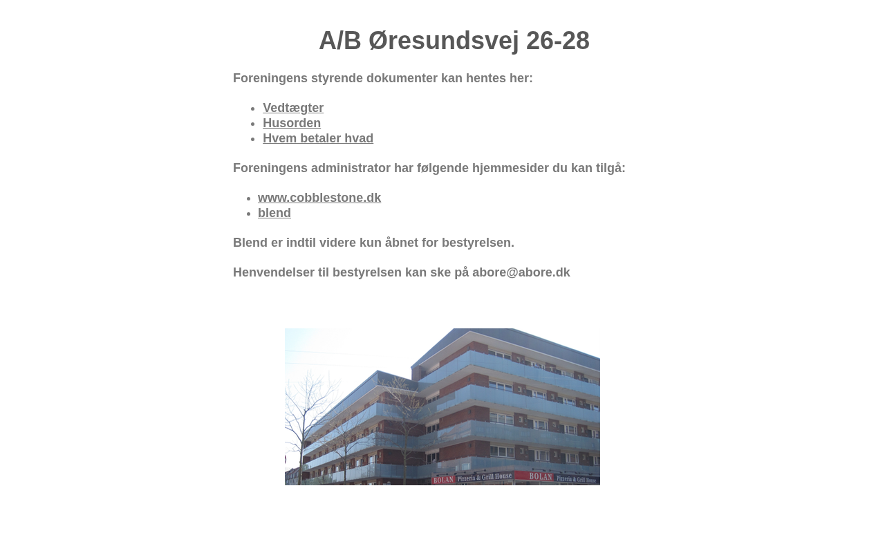 | registrant | Andelsboligforeningen Øresundsvej 26-28 | ||||||||||||||||