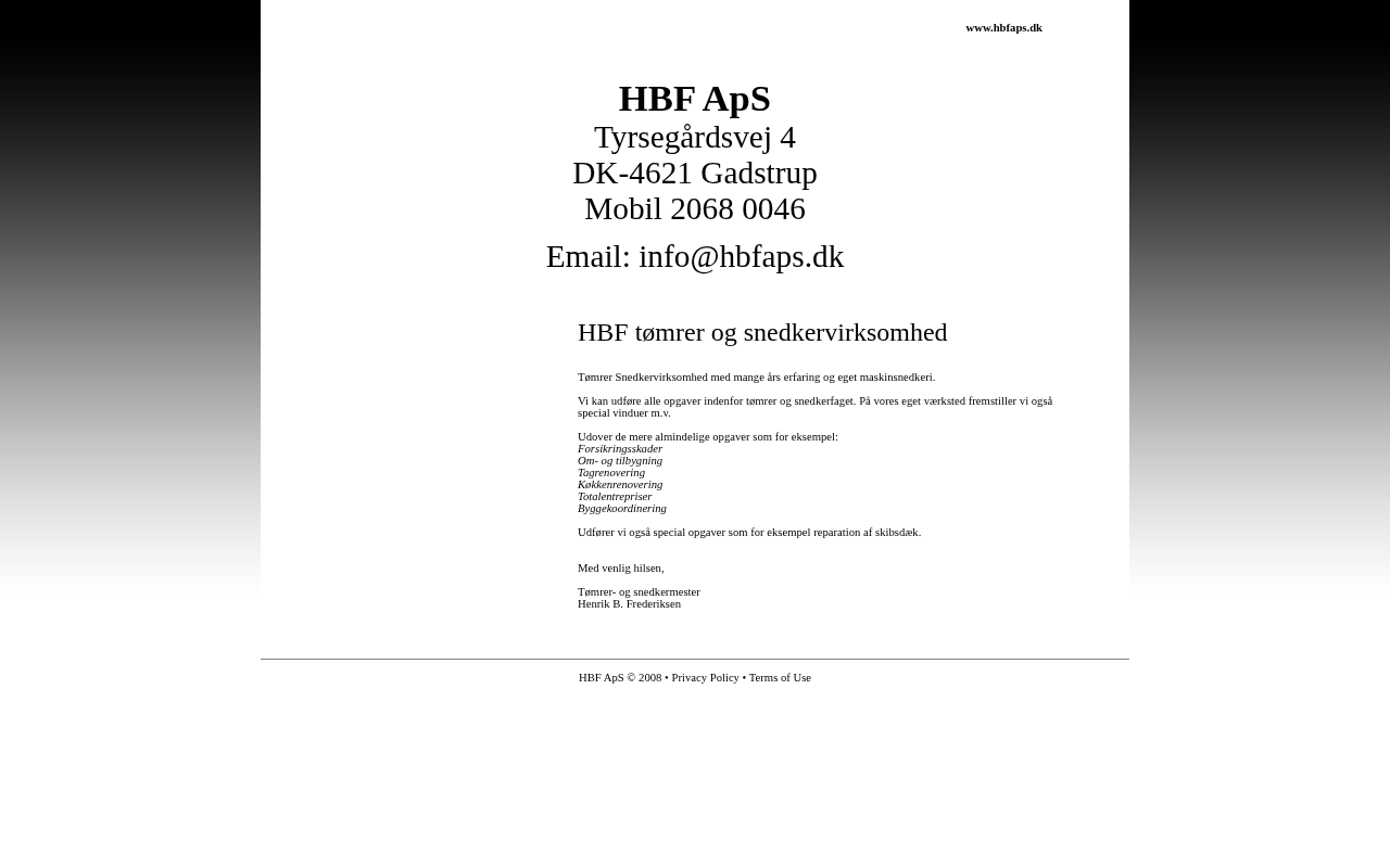 | registrant | TØMRER- OG SNEDKERFIRMAET HBF ApS | ||||||||||||||||